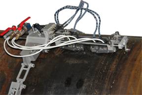 SKТТ-TS scanner on the basis of UD4-94-ОKО-01 flaw detector is intended for performing mechanized ultrasonic testing of the pipe body with diameter of 168 – 355 mm, wall thickness of 5 – 30 mm and length of 4 – 14 m for the purpose of detection of defects, such as longitudinal and transverse cracks and delaminations.